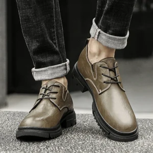 Luxury Brand Leather Oxford Shoes Men Thick Sole Platform Round Toe Classic Man Business Casual Shoes Comfortable Driving Shoes